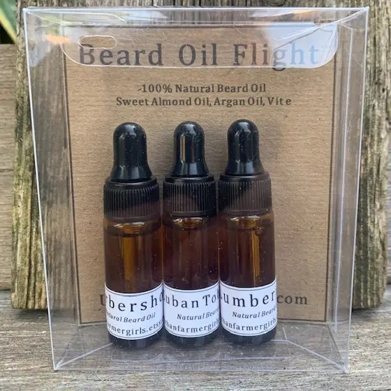 Set of 3 Beard Oil vials, packaged in a clear plastic gift box set