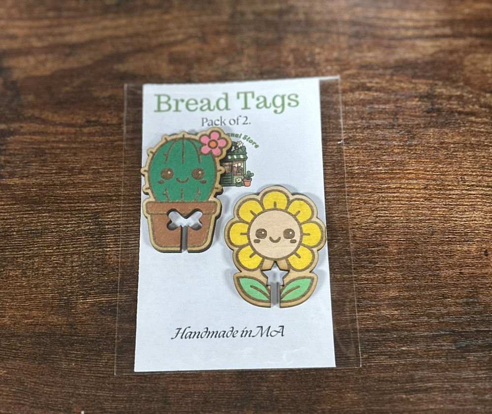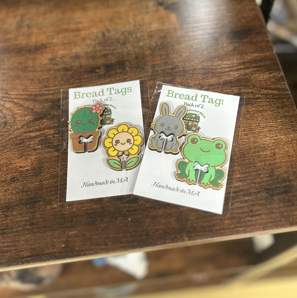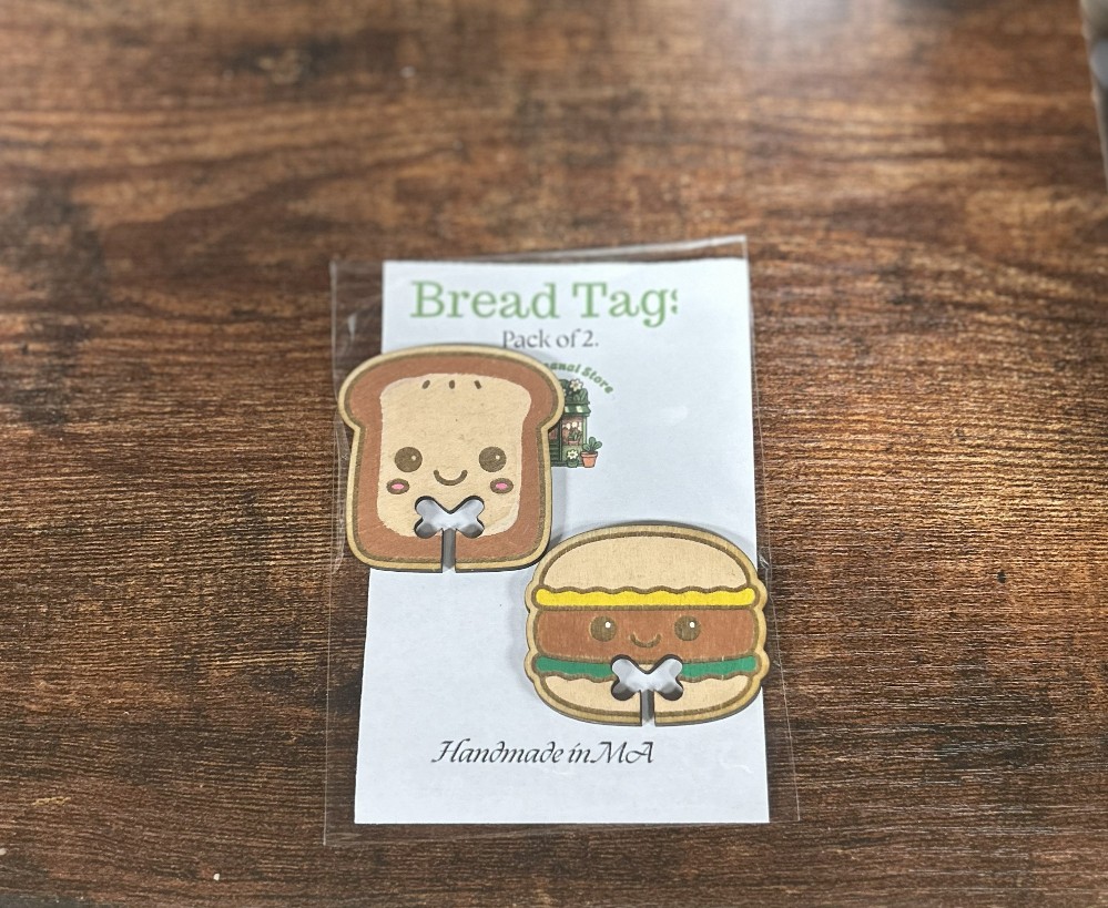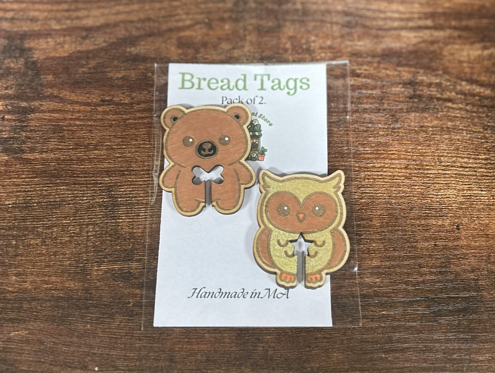 Add a touch of charm to your kitchen routine with these adorable handmade bread tags! Each set comes with two uniquely designed wooden tags featuring playful characters like bunnies, frogs, flowers, burgers, ladybugs, owls, and more.