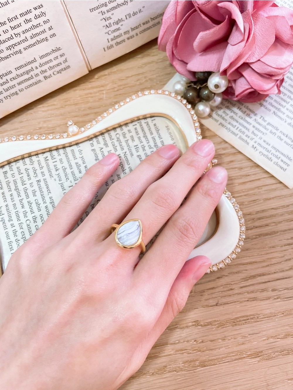 Size 7; 14k Gold Filled, Blue Lace Agate.