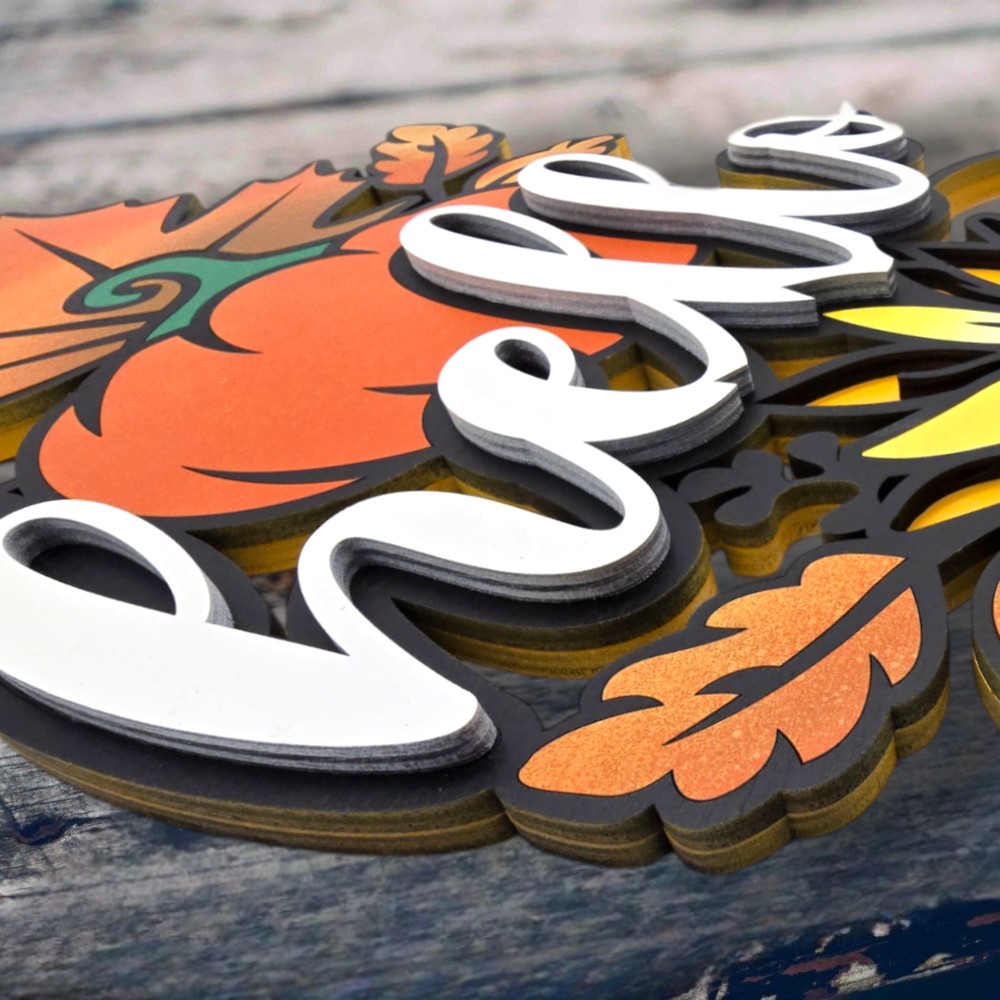 Celebrate the cozy vibes of autumn with our Hello Fall Door Hanger! Featuring a charming pumpkin surrounded by vibrant fall-colored leaves, this seasonal décor piece is perfect for welcoming guests to your home. Crafted from three layers of 1/4 inch Baltic birch, the door hanger showcases beautiful depth and dimension while remaining lightweight and durable.